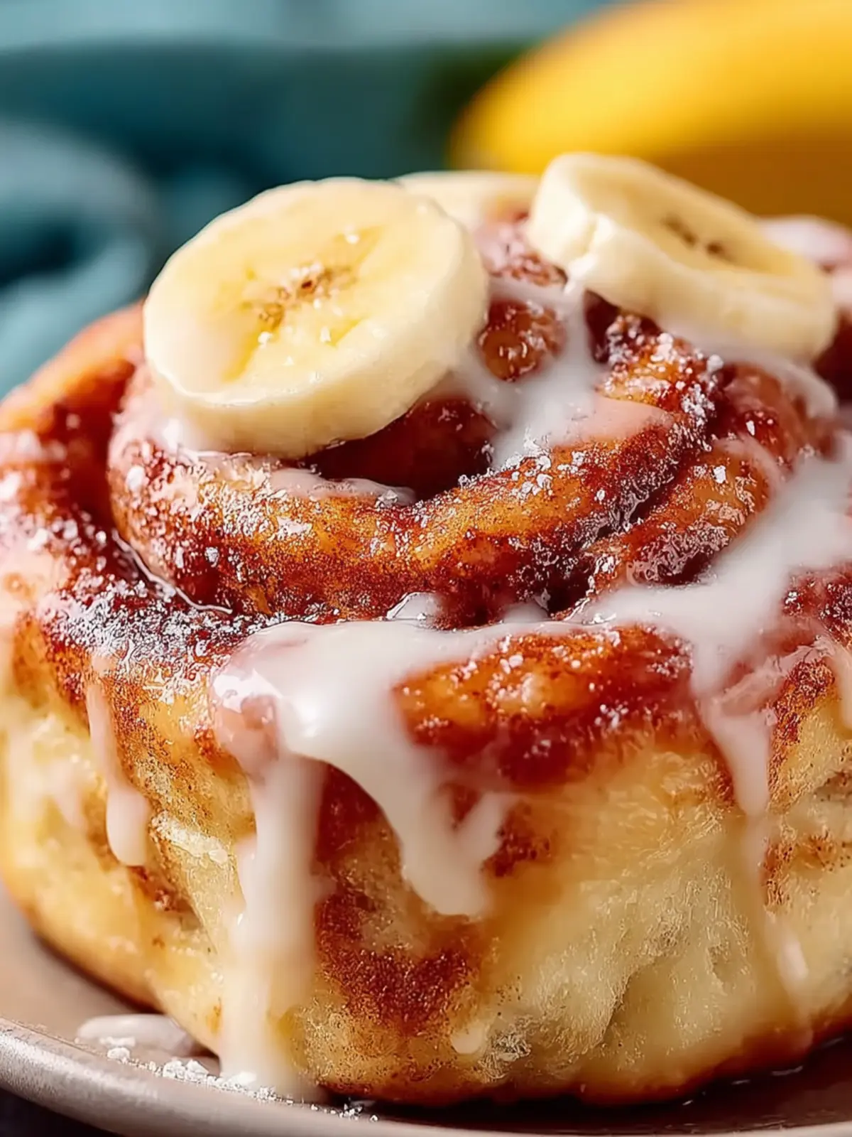 Deliciously soft and fluffy banana cinnamon rolls topped with creamy icing.