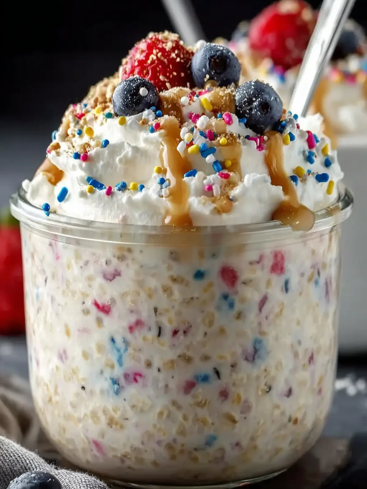 Sprinkles: The finishing touch! Colorful sprinkles not only make these oats visually appealing but also add that celebratory flair we all love in birthday cake.