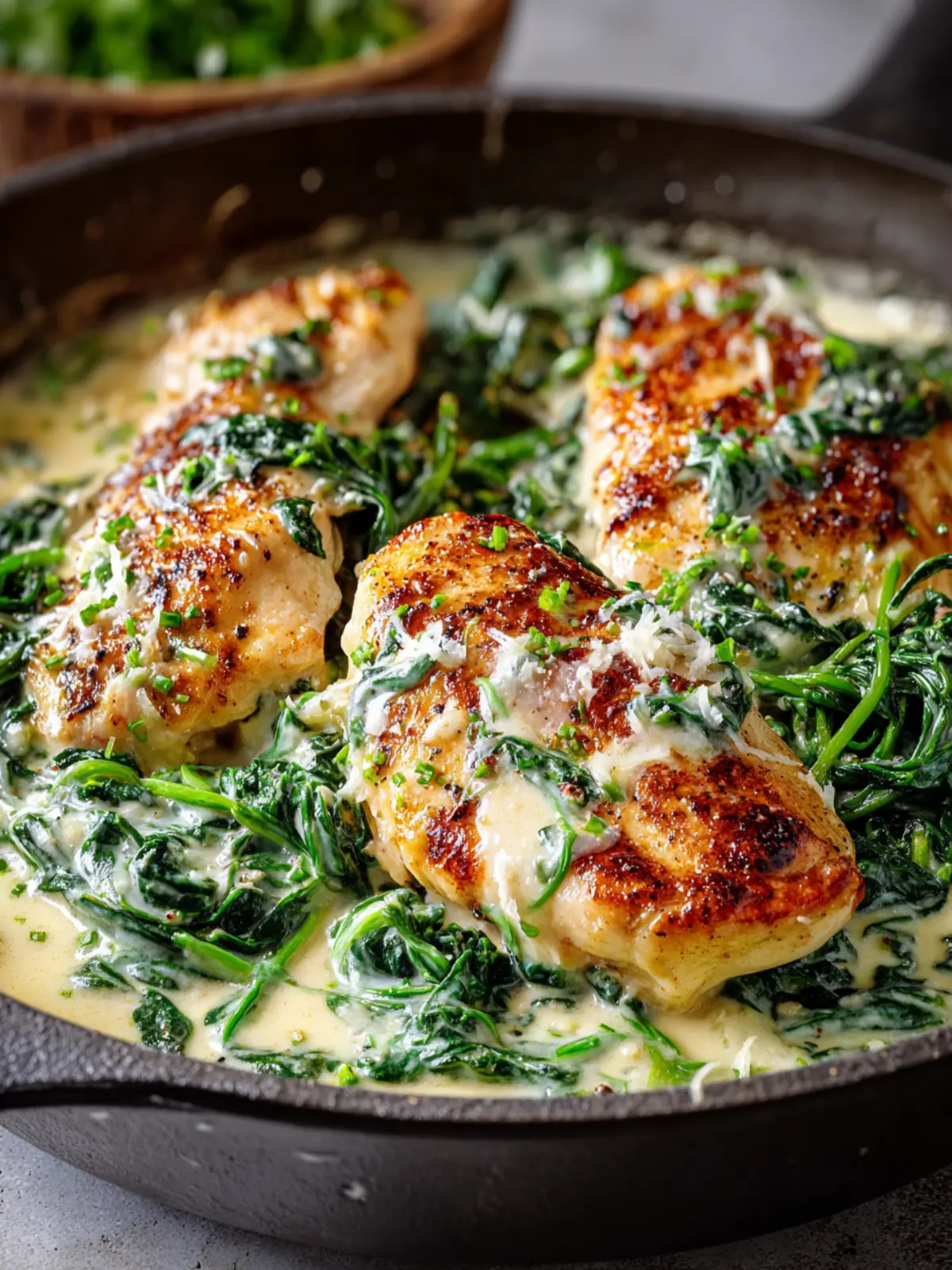 Chicken Breast: The star of your creamy chicken spinach skillet is the chicken breast. Opting for boneless, skinless chicken keeps the dish light but packed with protein. Searing the chicken creates a golden crust that adds depth to the flavors, making each bite incredibly satisfying.