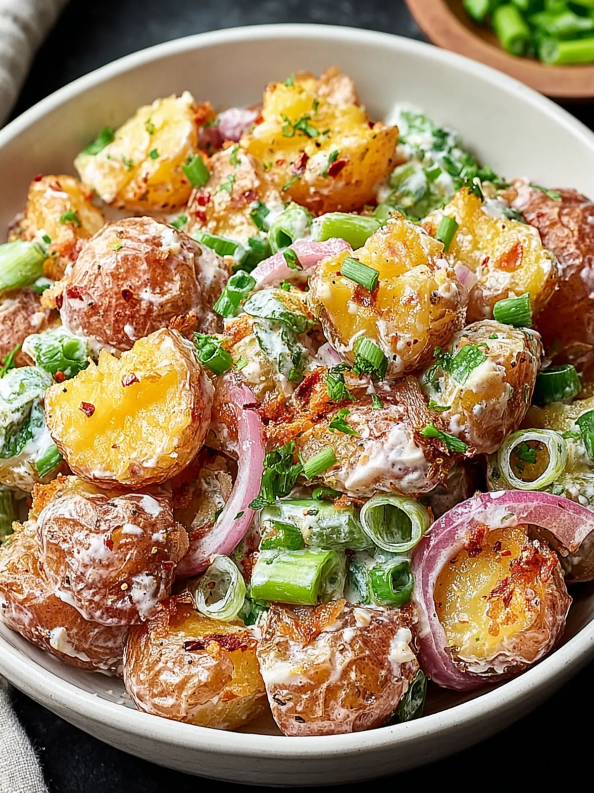 Whether you’re heading to a backyard barbecue, a picnic in the park, or just looking to elevate your weeknight dinner, this salad is the ultimate crowd-pleaser. Each serving is a delicious reminder to embrace summer’s flavors while creating memories with those you love. So grab your potatoes and let’s get smashing!