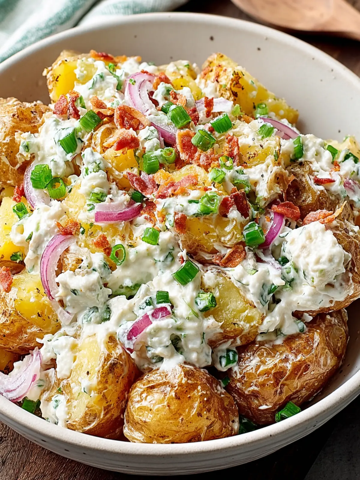 Opt for waxy potatoes, like red or Yukon gold. They hold their shape well after boiling, ensuring a hearty texture that pairs beautifully with creamy dressing.
