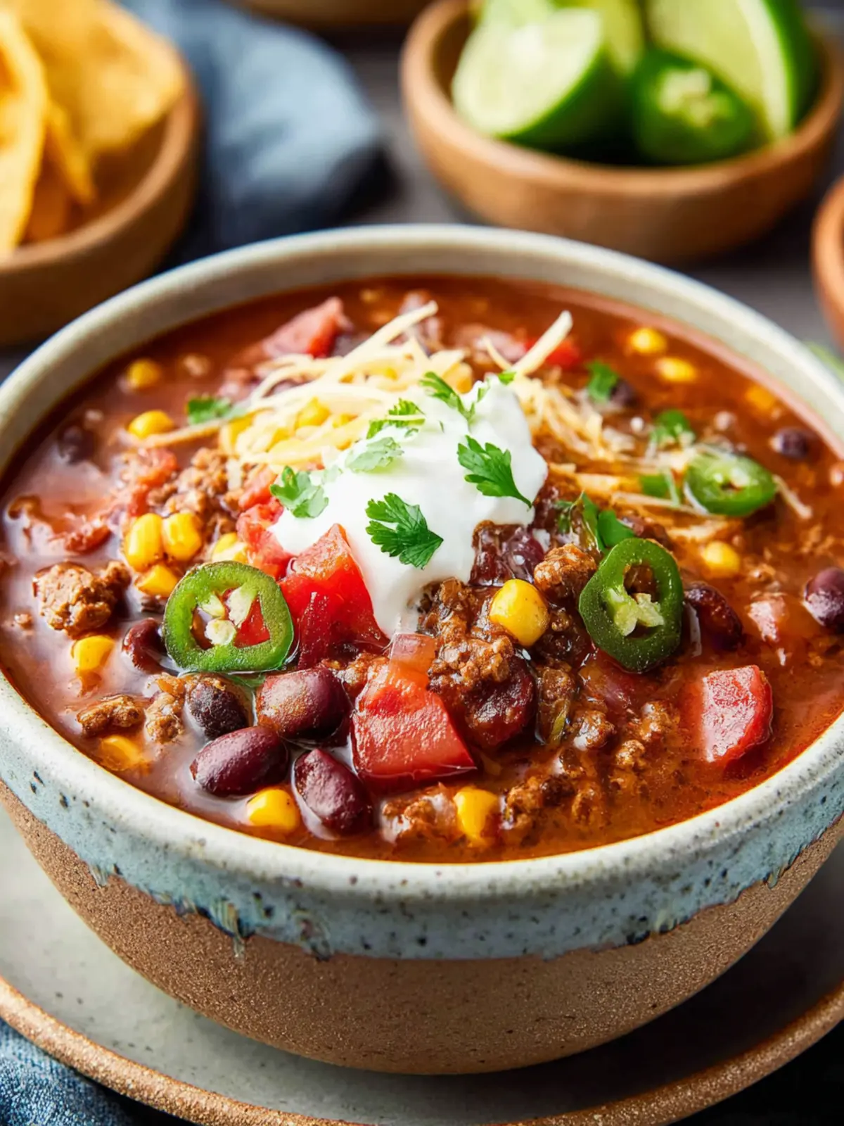 This hearty taco soup is packed with flavor and perfect for a cozy meal.