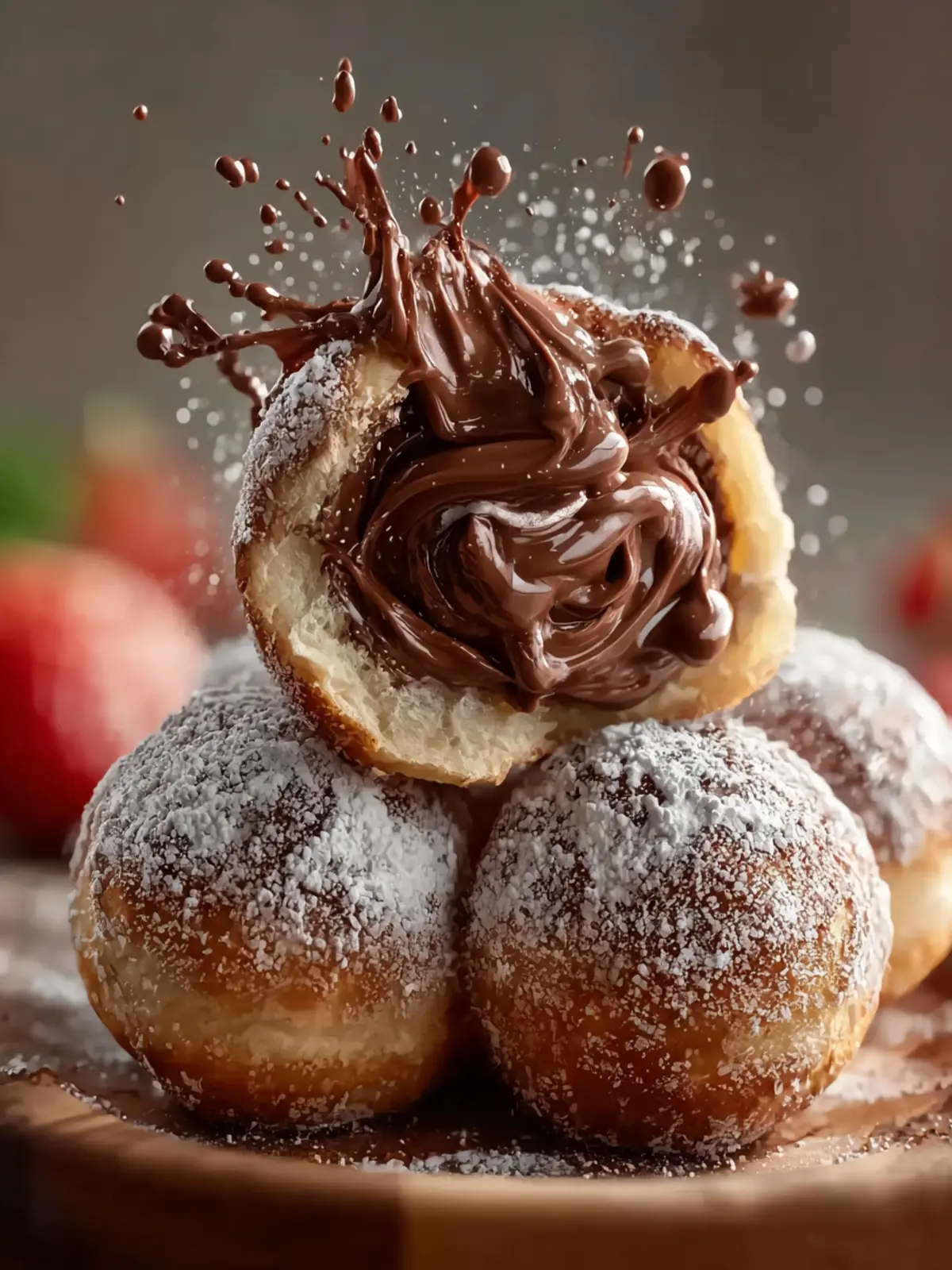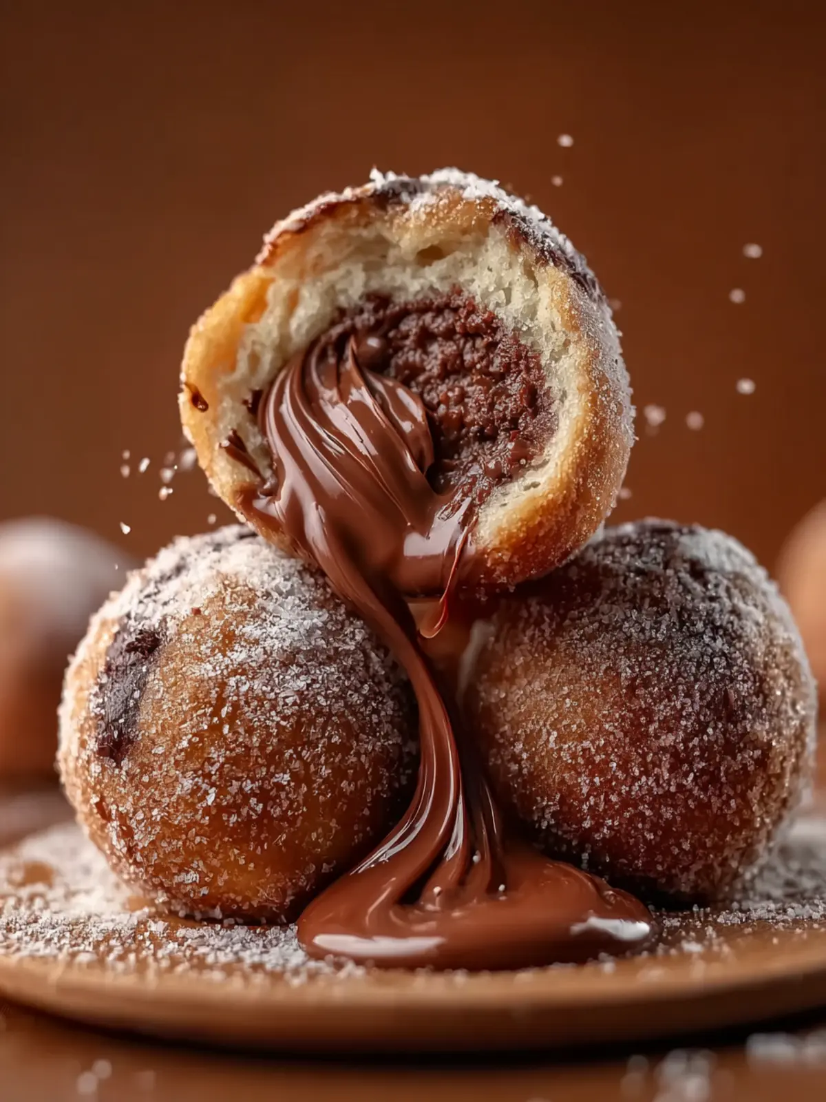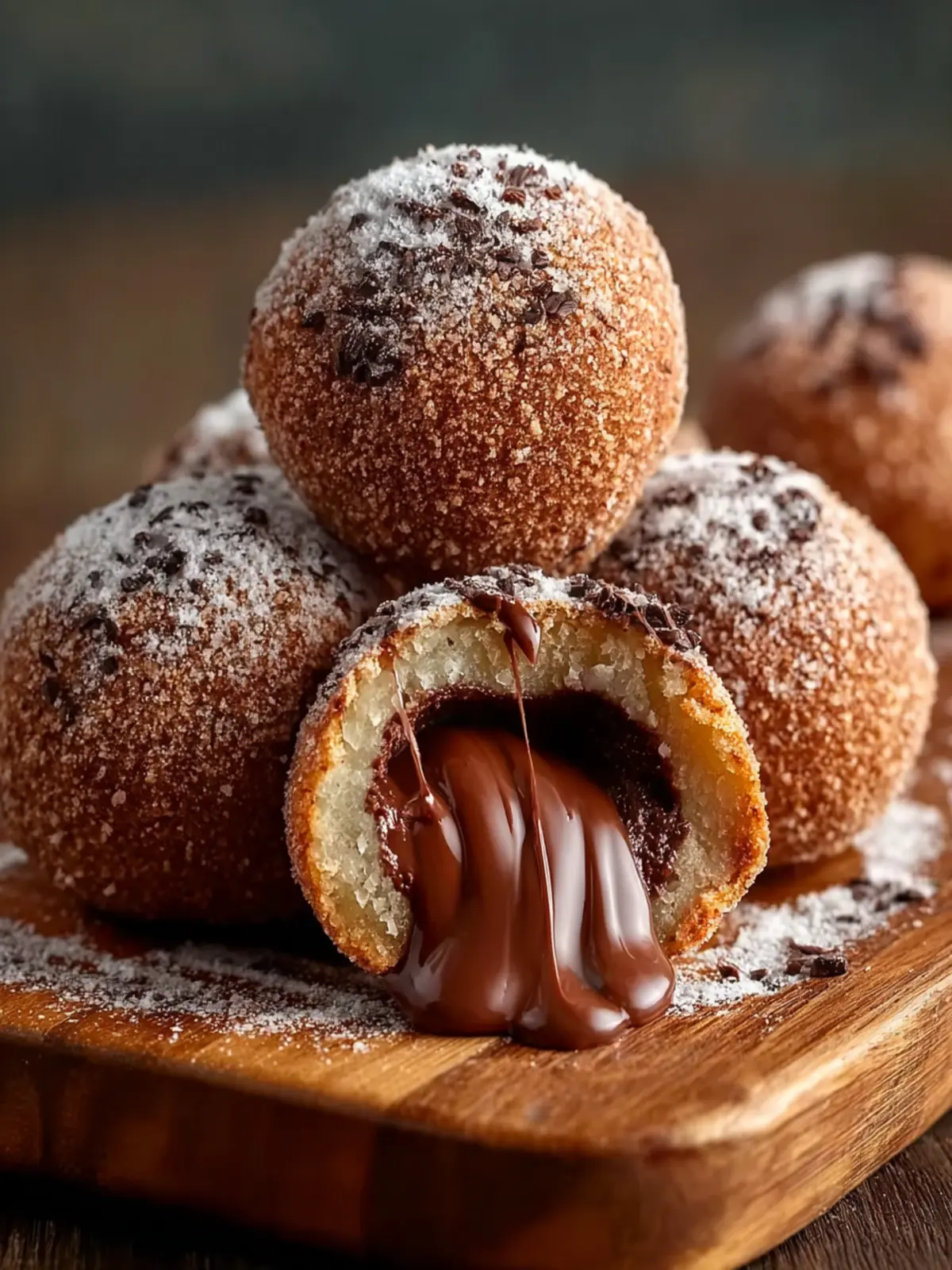 8. Finish and Serve – Allow them to cool slightly, then dust with powdered sugar. When you break one open, the soft dough and melted Nutella center make every bite irresistible.