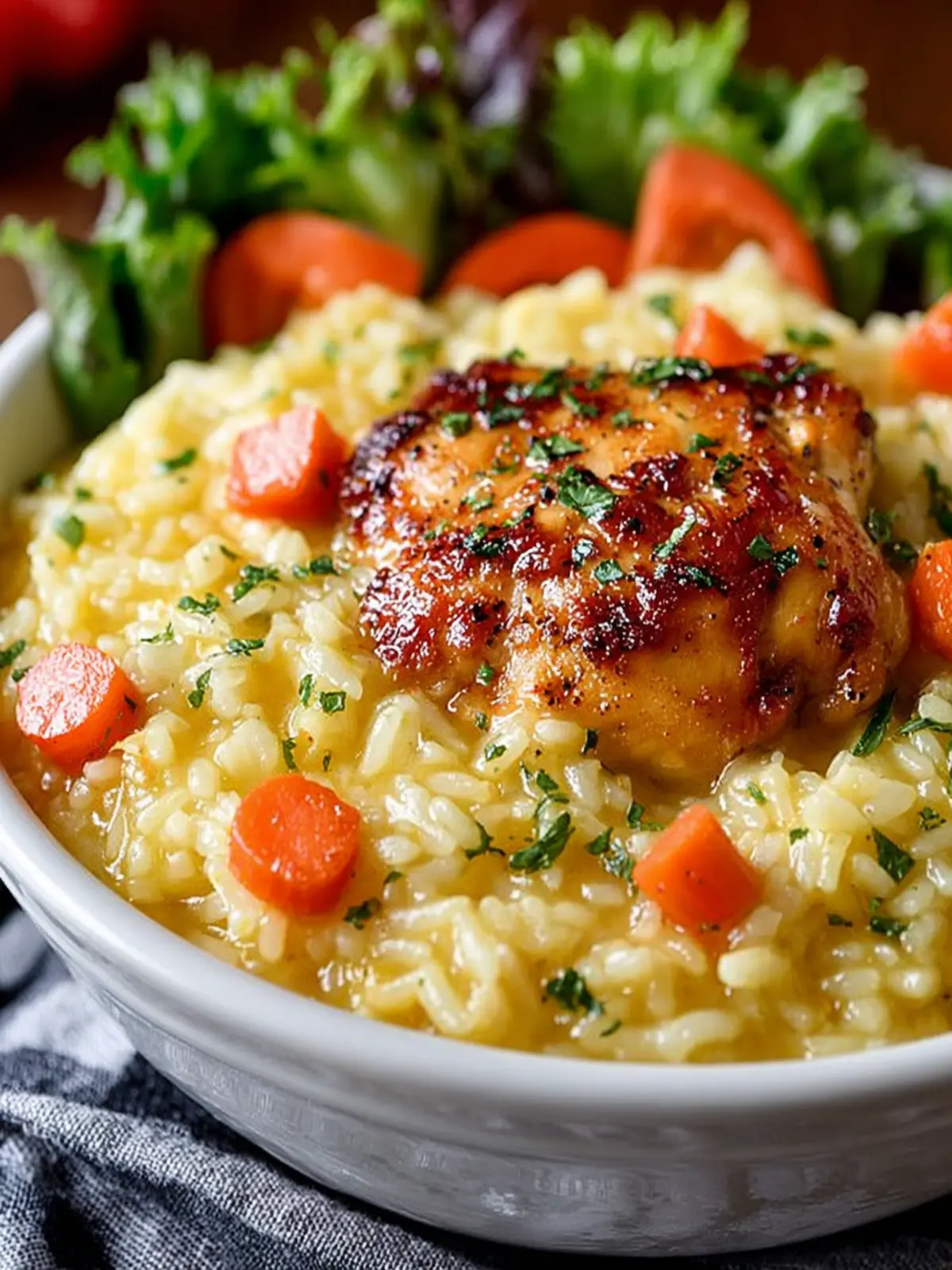 Fresh Salad: Complement the savory richness of the chicken and rice with a light, refreshing salad. A simple arugula salad with a lemon vinaigrette adds a nice zesty touch.