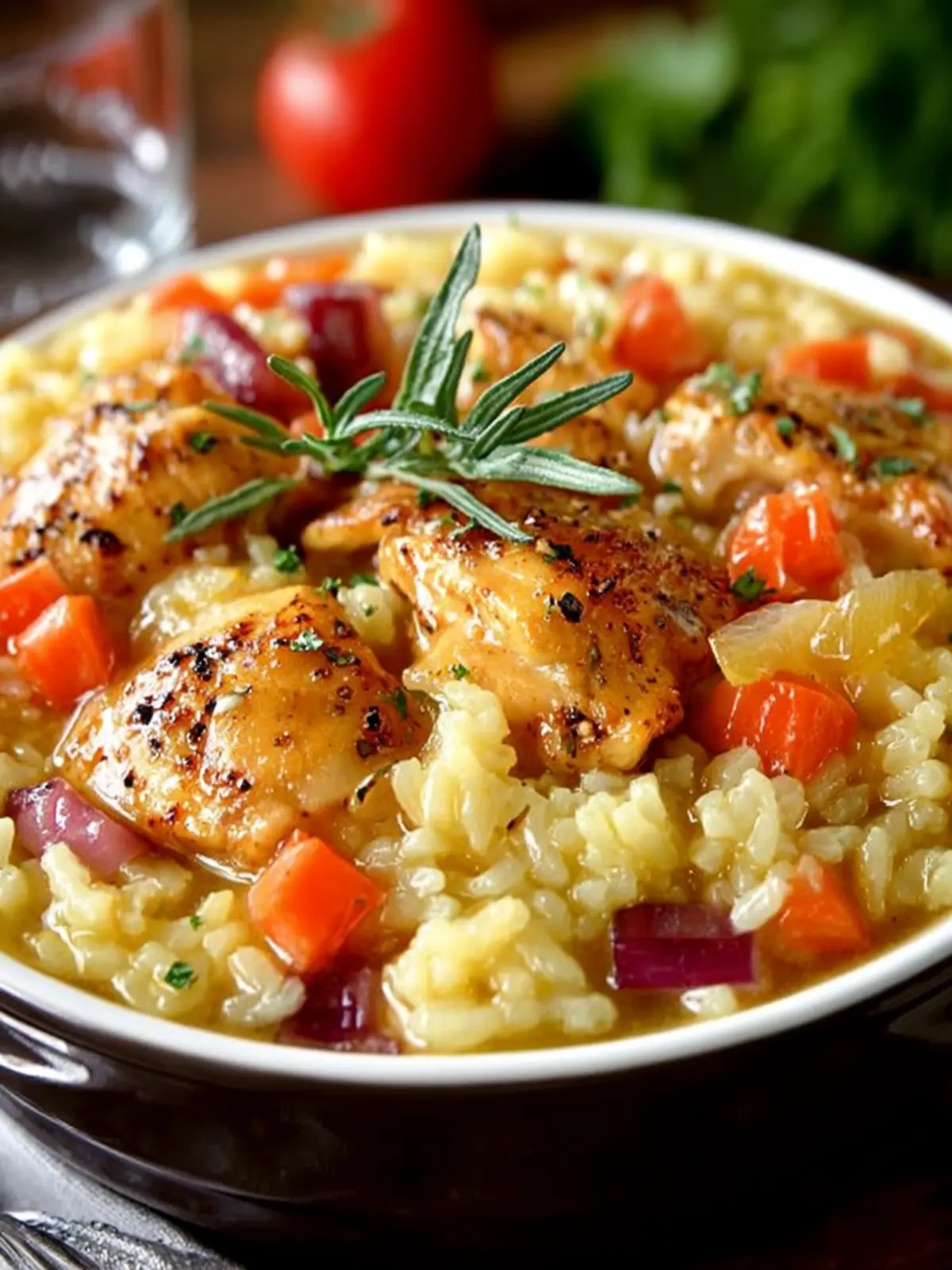 Using bone-in, skin-on chicken thighs adds flavor and moisture. They stay tender during the cooking process and impart a rich taste to the rice. For a bit of crunch, sear the chicken first to get that golden-brown color and enhanced flavor.