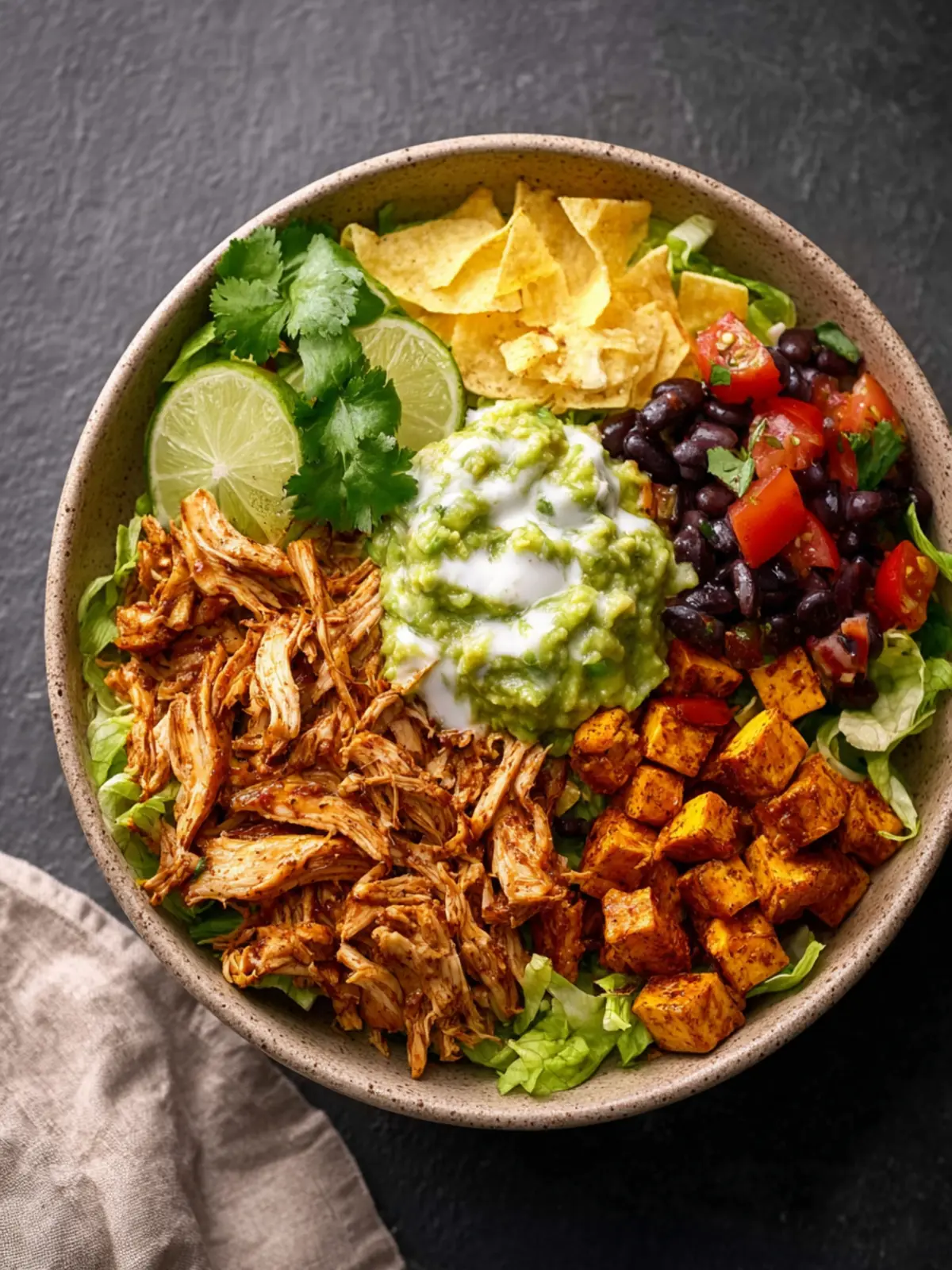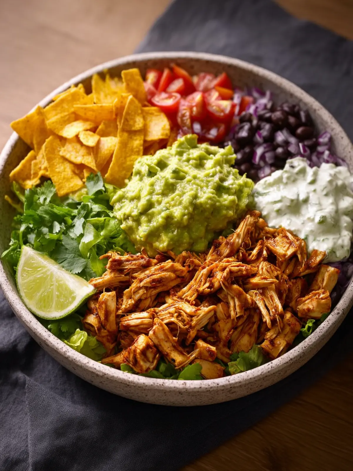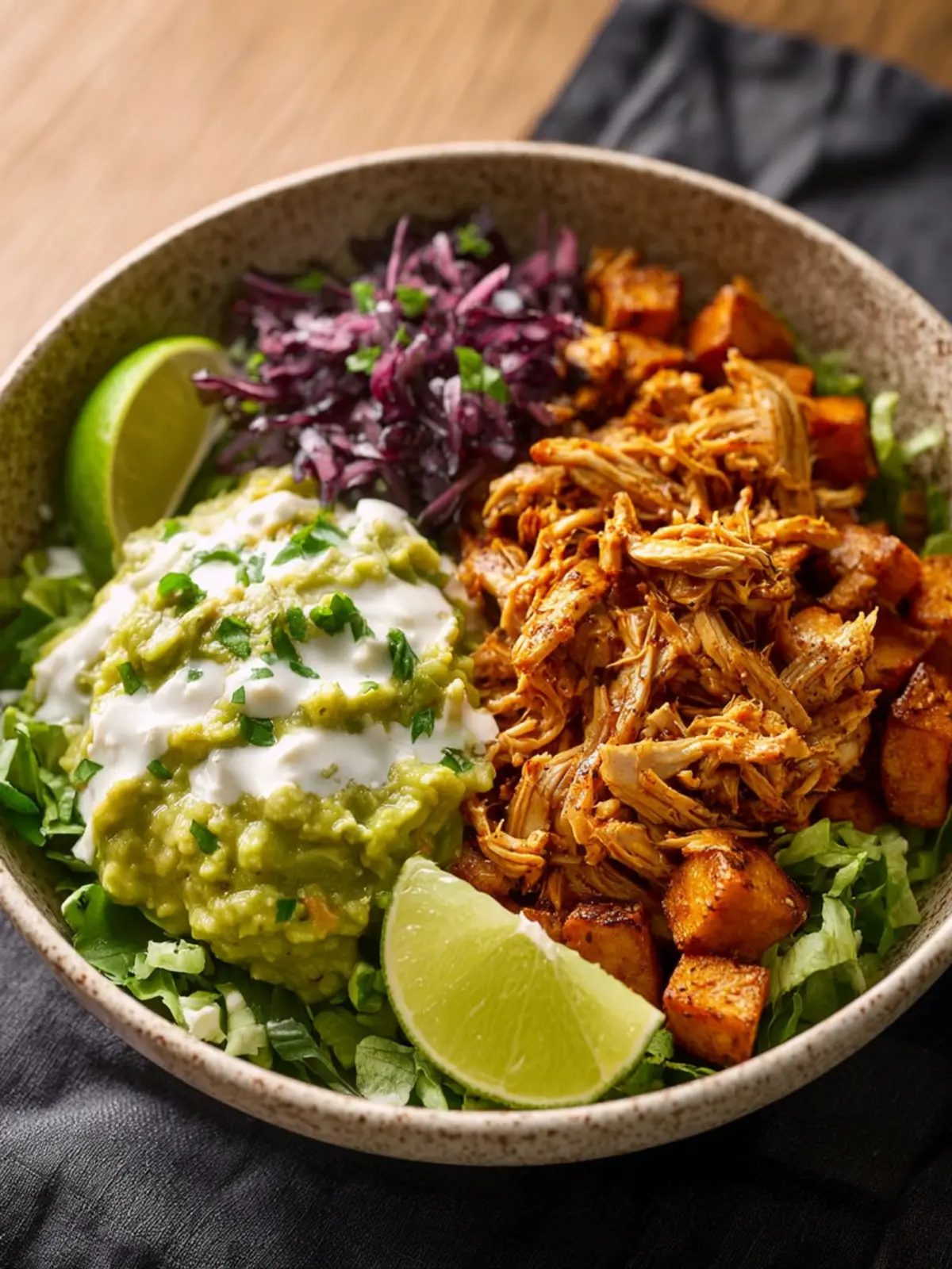 The great thing about this bowl is that it’s packed with protein from the pulled chicken, making it a nutritious option you can feel good about. The chicken is cooked until it’s fall-apart tender, soaking up all those delicious spices. What’s more, the homemade guacamole is not only creamy and satisfying but loaded with healthy fats from avocados, taking your meal to the next level.