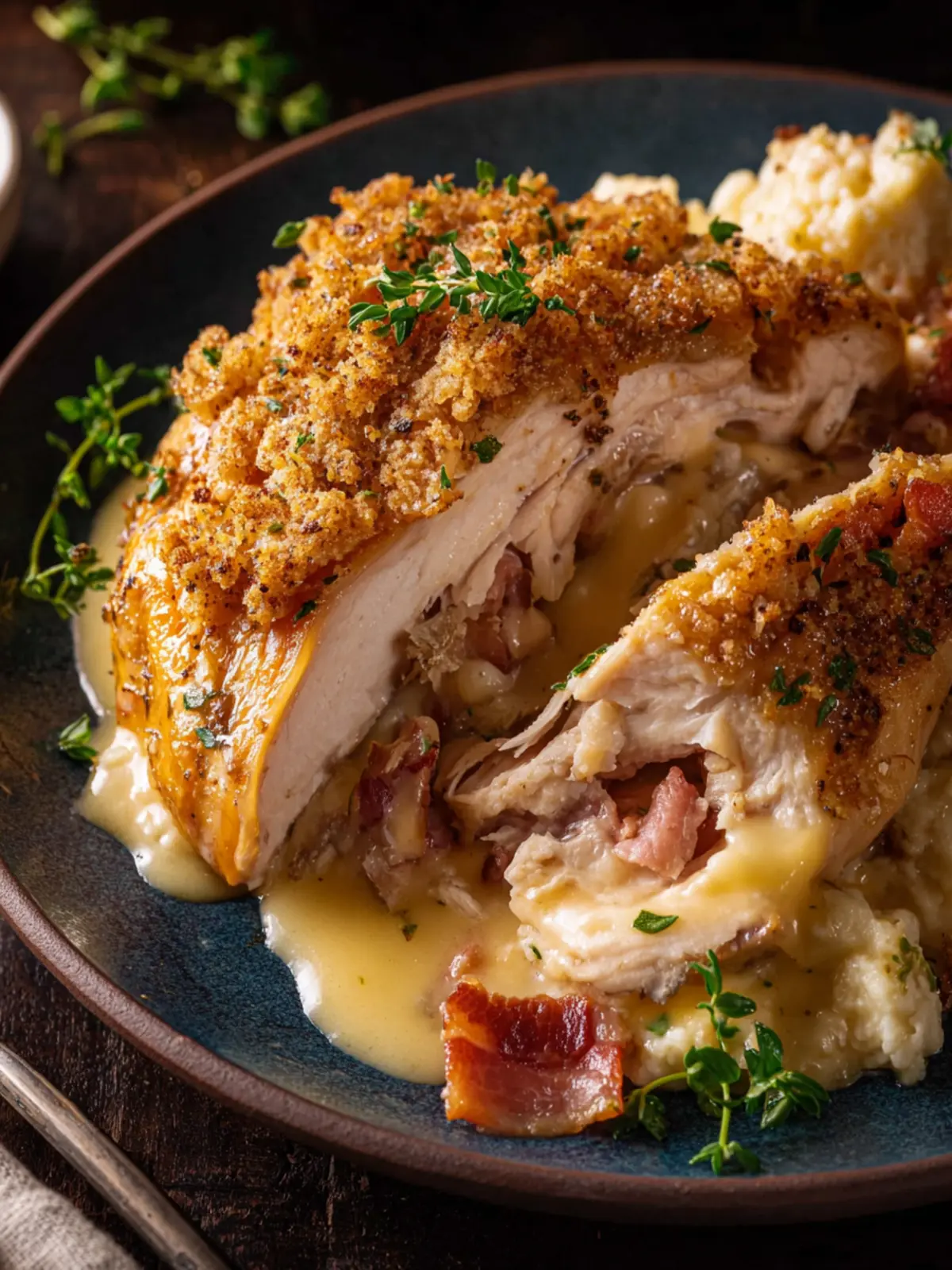 For that classic cordon bleu crisp, consider tossing your slow-cooked chicken under the broiler for a few minutes after it’s done cooking. Just a quick broil can give it that gorgeous golden finish without compromising the moistness.