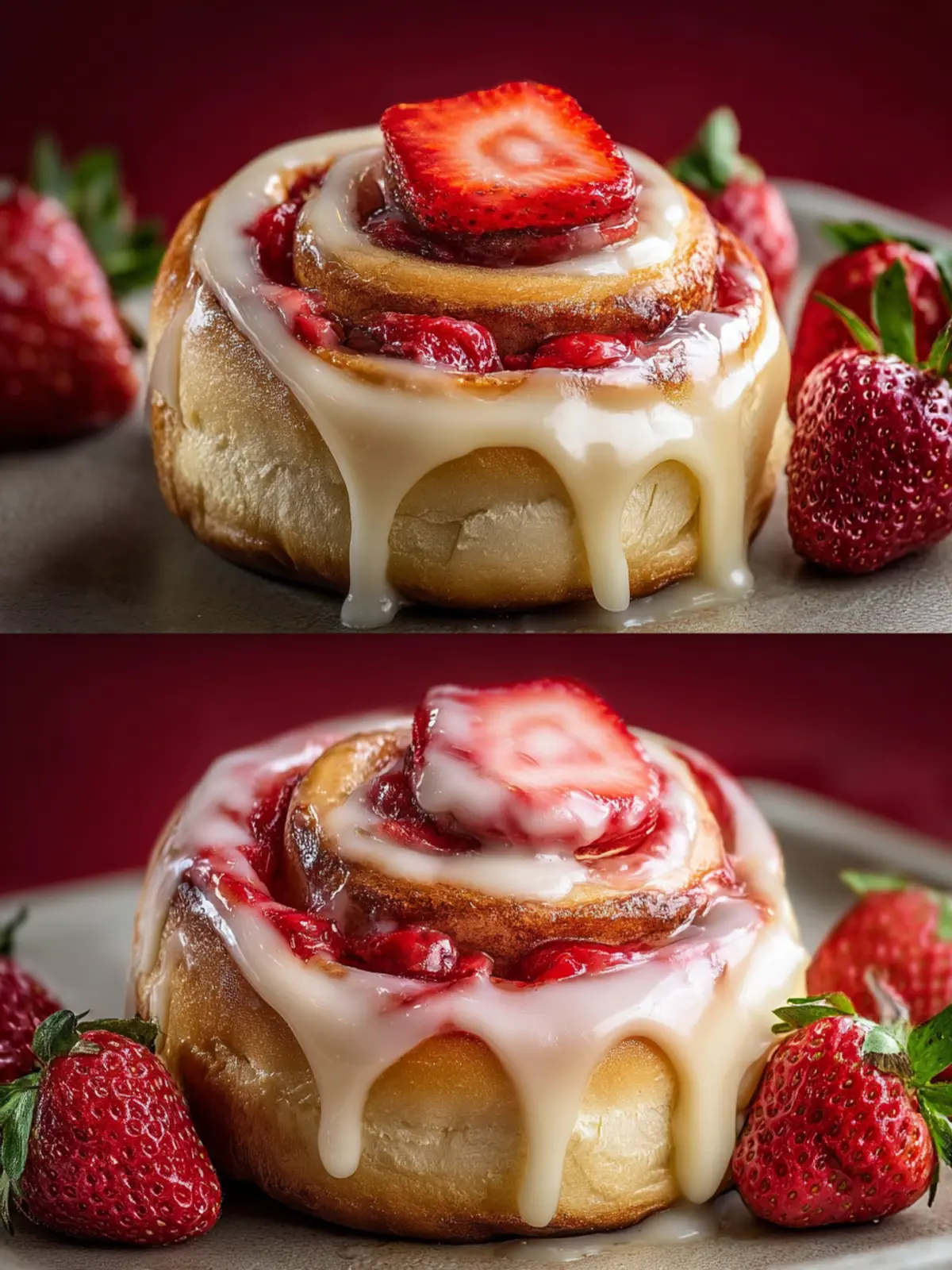 Drizzle With Strawberry Glaze: After baking, a light strawberry glaze adds a pop of color and enhances that fruity flavor, making these rolls irresistibly attractive.