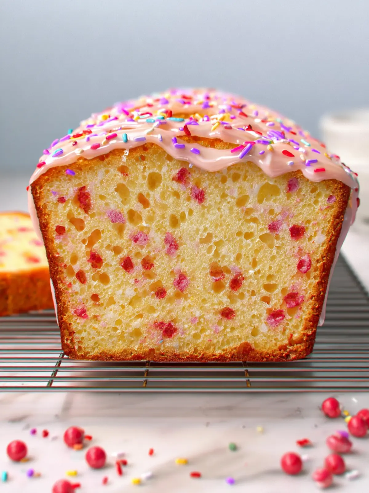A delicious and colorful funfetti loaf cake perfect for celebrations!