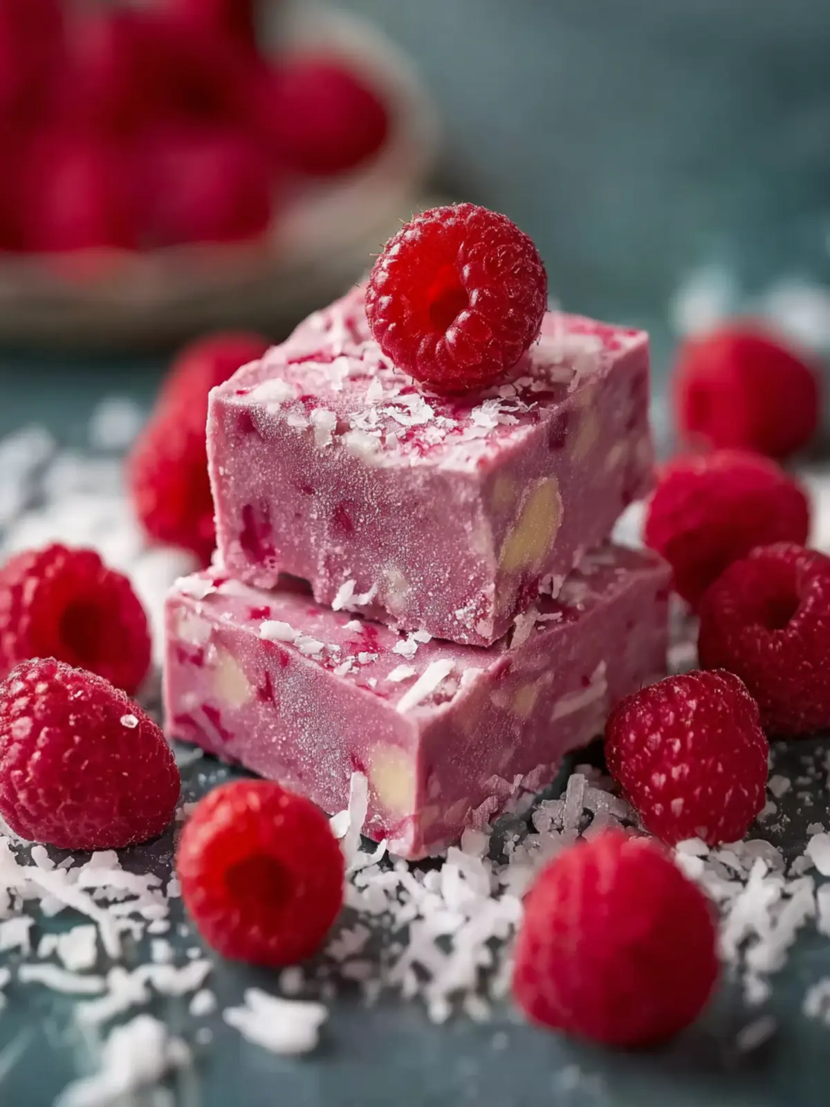 This creamy coconut raspberry fudge is a delightful treat that combines the rich flavor of coconut with the tartness of fresh raspberries.